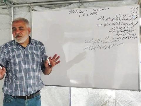 Caption: A teacher in Gaza writes, "Sorry, I can't complete the class. My son was injured in an airstrike."