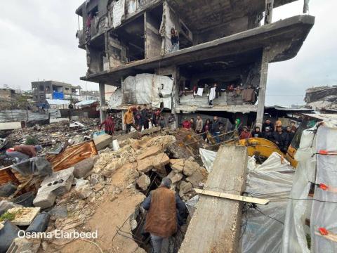 Caption: Palestinians inspect a collapsed home due to the winter storm in Gaza.