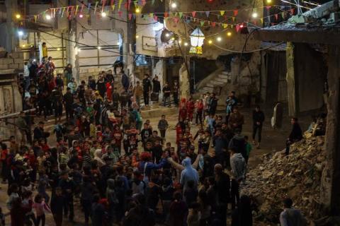 Caption: Palestinians mark the third day of the holy month of Ramadan in Gaza as they still navigate access to food.