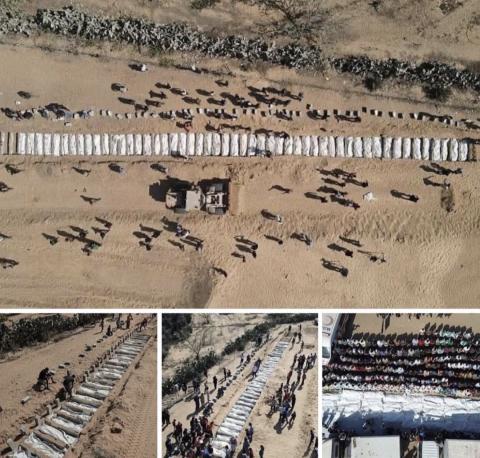 Caption: A mass grave for 154 Palestinians whose bodies were handed over to health authorities by Israel through the Red Cross.